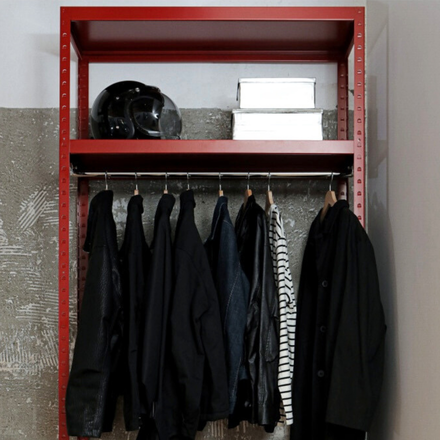 rareraw 的代表性產品之一,層板高度可每 4cm 調整,並以堅固的半打孔結構緊密連接;層板提供 PC 材質與鋼製材質兩種選擇,皆具備優異的承重力,能兼顧美觀與實用性。
