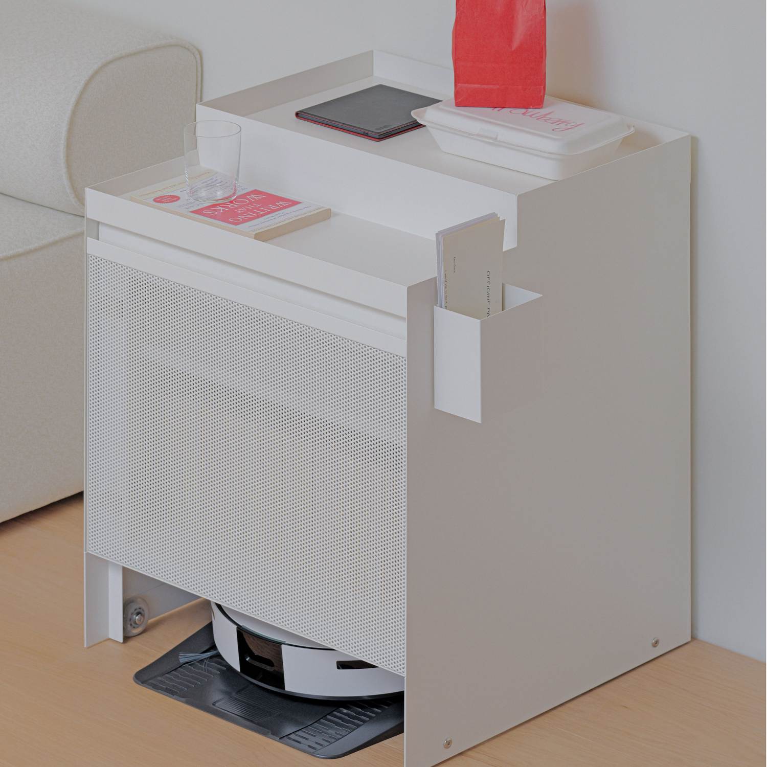 一款可整潔收納掃地機器人的收納櫃,不只是儲物空間,更為居家空間建立秩序感,提升生活的質感與氛圍,是 rareraw Home 系列的首個項目。