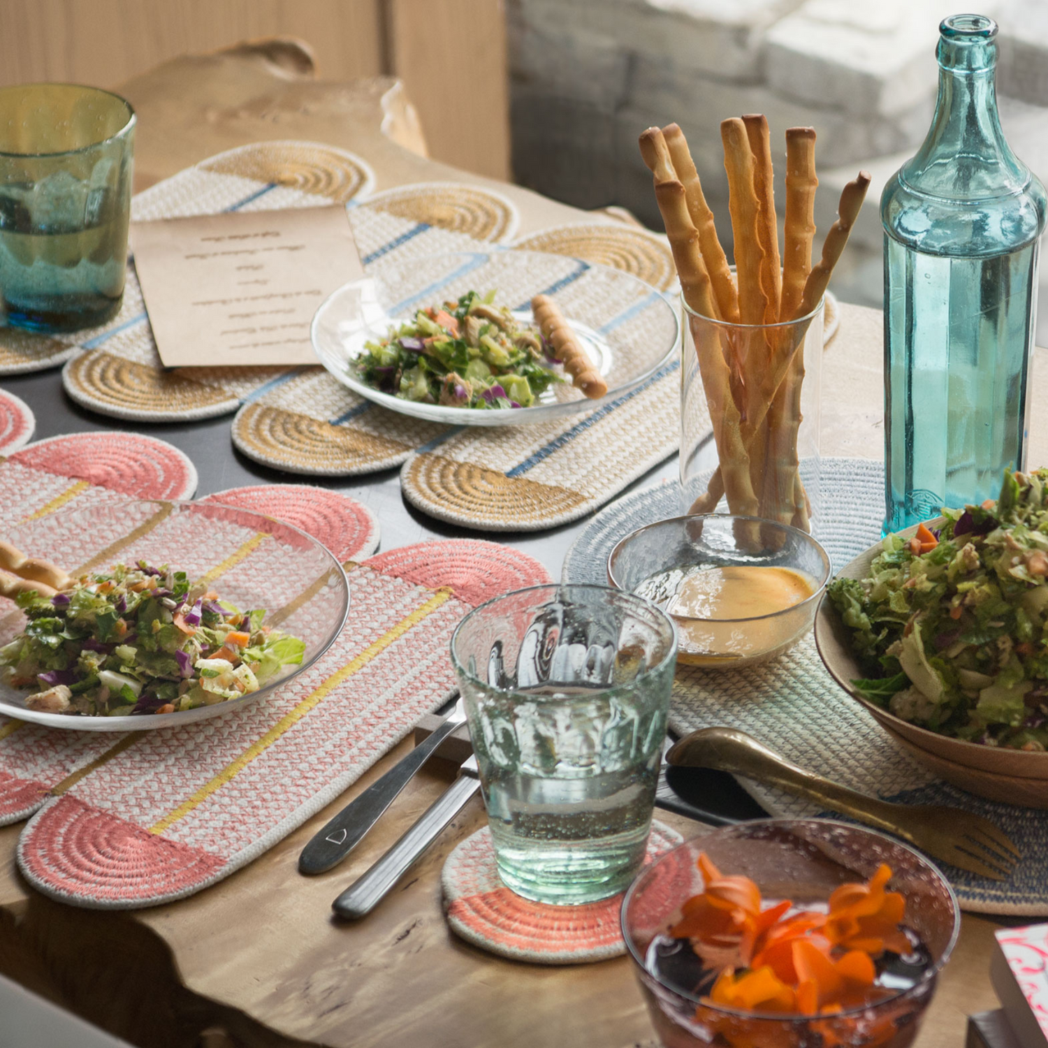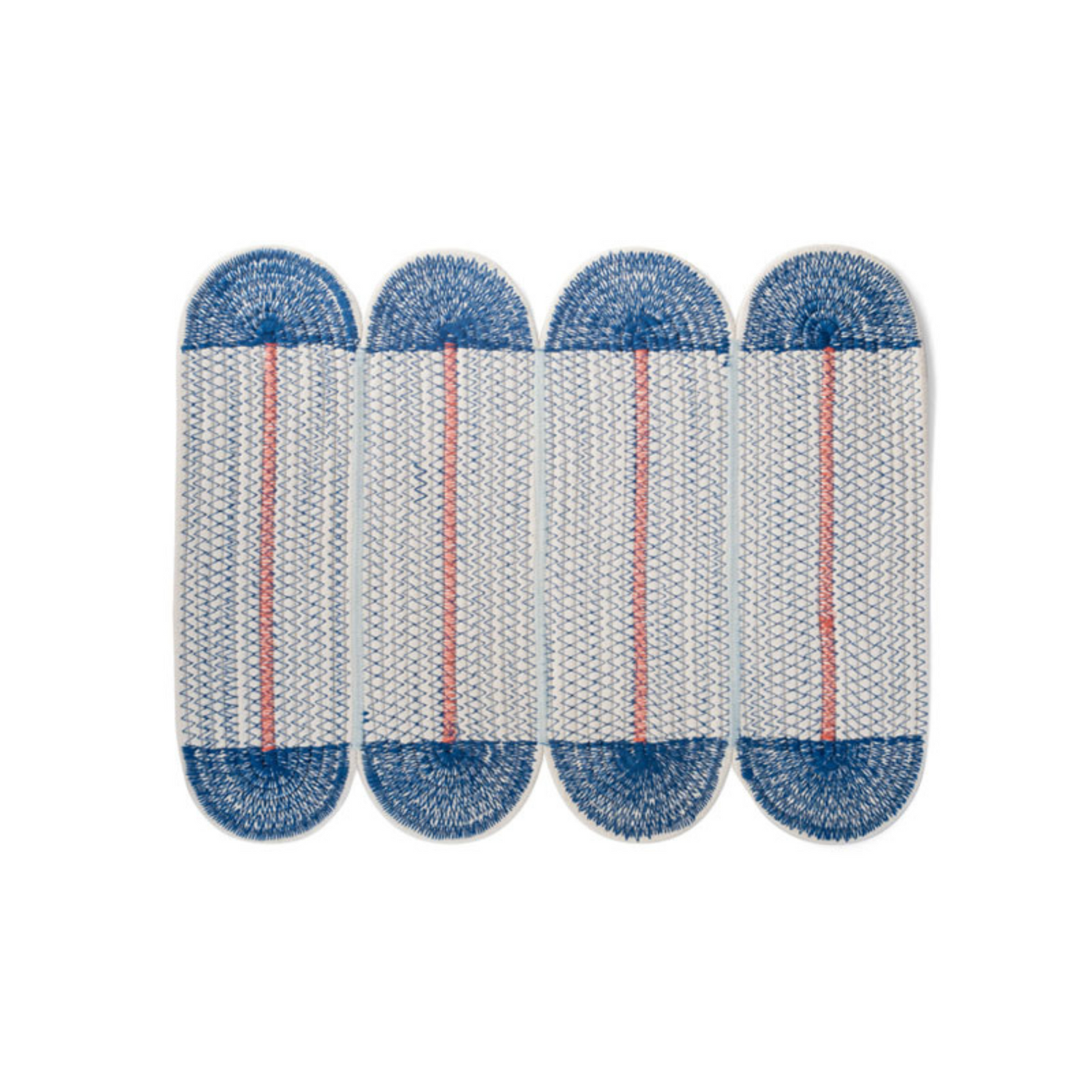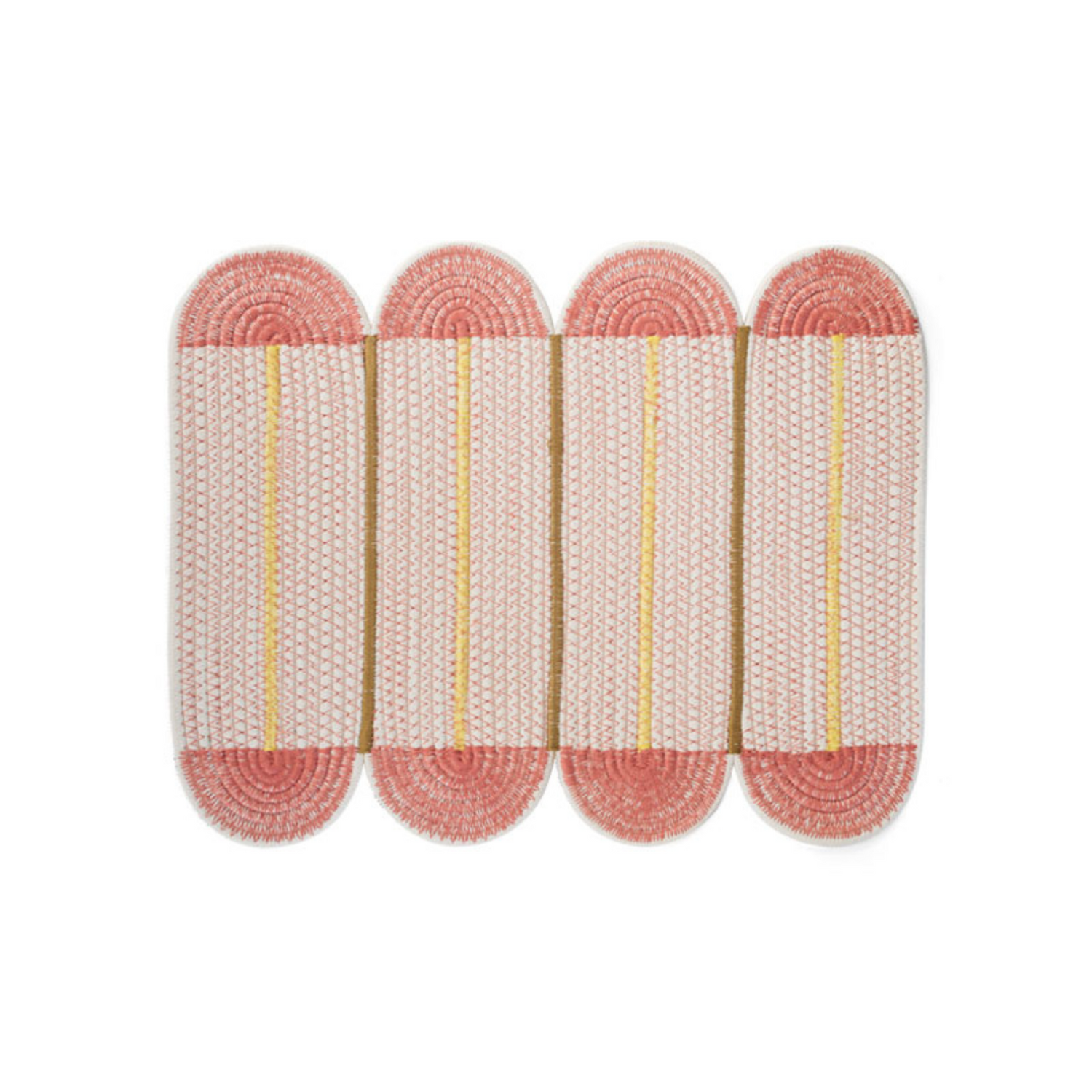 以柔和色調搭配獨特形狀為特色,繞線式編織棉繩設計,結合現代感十足的縫線圖案,為餐桌增添溫暖與趣味感,讓用餐氛圍更加豐富愉悅。