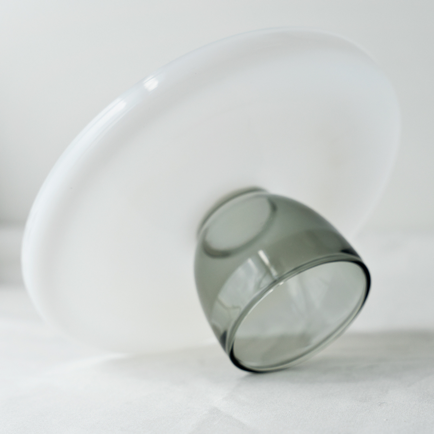採用耐熱乳白玻璃與透明玻璃結合設計,具有高腳座造型與簡約圓頂輪廓,讓日常餐桌也能呈現出層次與儀式感。