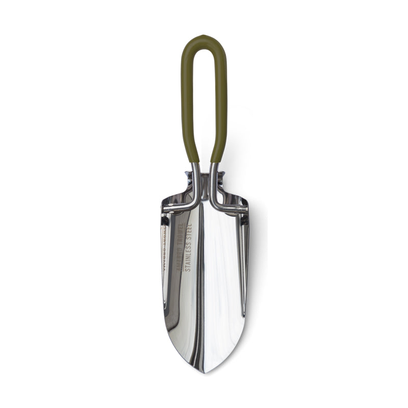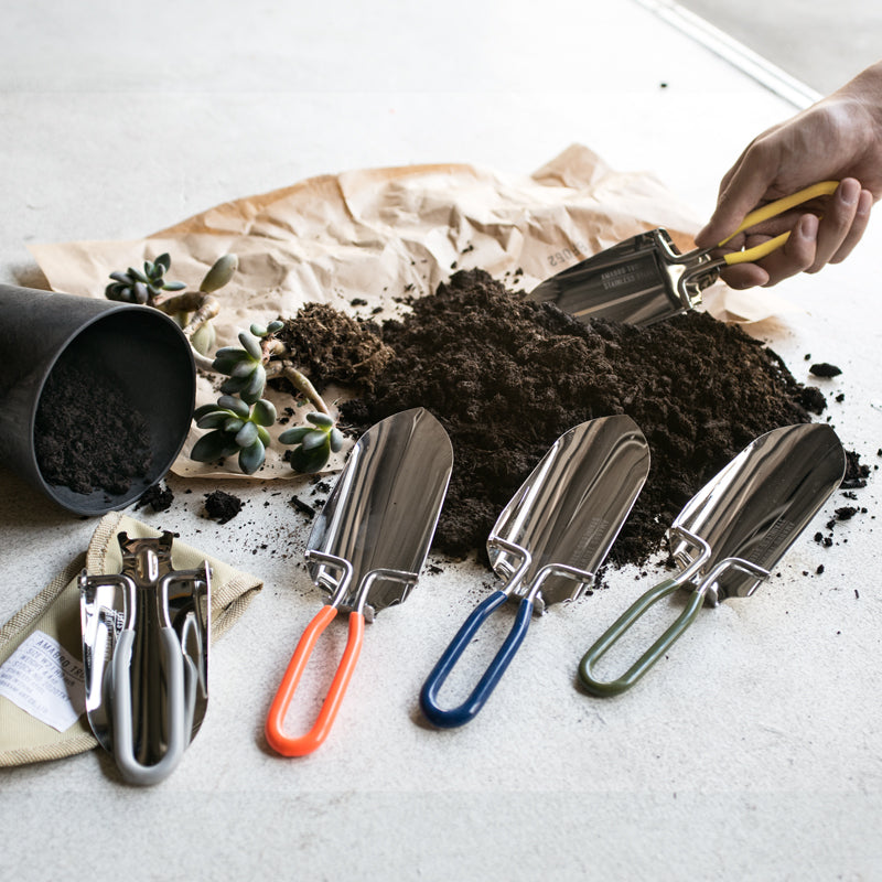 堅固耐用的不鏽鋼製摺疊鏟,以極致輕巧的收納設計,在居家園藝或戶外露營時都能輕鬆隨身攜帶;手把處特別包覆了繽紛色彩的橡膠墊,不僅提升了握感,更為工具增添了亮眼的視覺點綴。