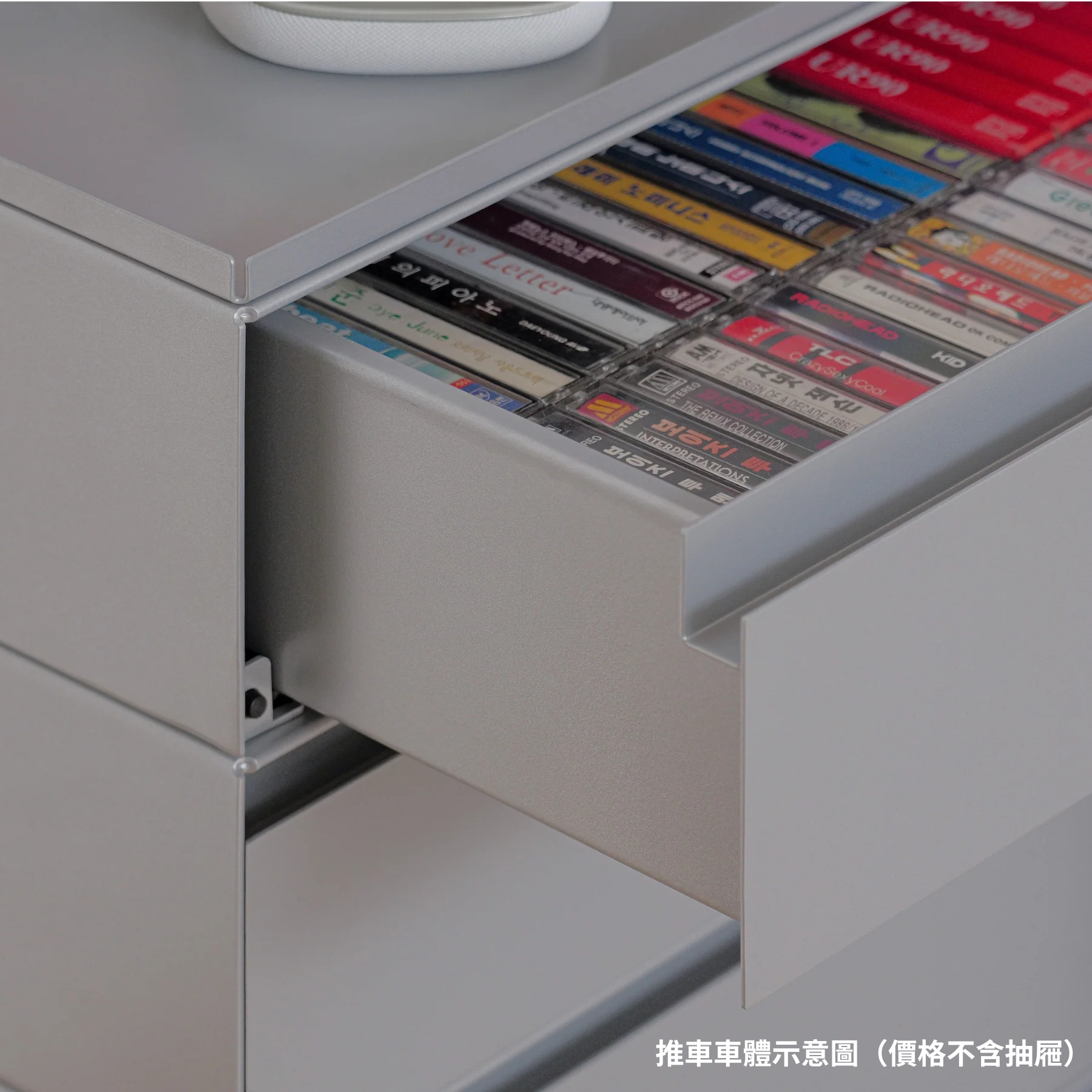 整體安全承重達 150kg,即使放置重物也能穩固承載,底部配置可自由旋轉的滑輪,可輕鬆移動至所需空間,可自由組合搭配 S/M 尺寸抽屜,依高度與用途自由疊放,抽屜可前後互換方向,自由調整使用面向。